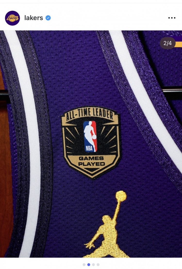詹姆斯在昨日比賽中的球衣附帶了“歷史出場王”特制補丁,球鞋鞋跟處也附有“1612”的紀念字樣。