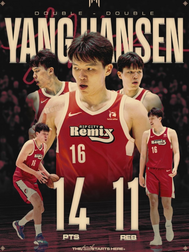 這是楊瀚森背靠背(3月21日得到17分11籃板)拿到兩雙的數(shù)據(jù),今天開拓者官方為他制作海報(bào)慶祝。