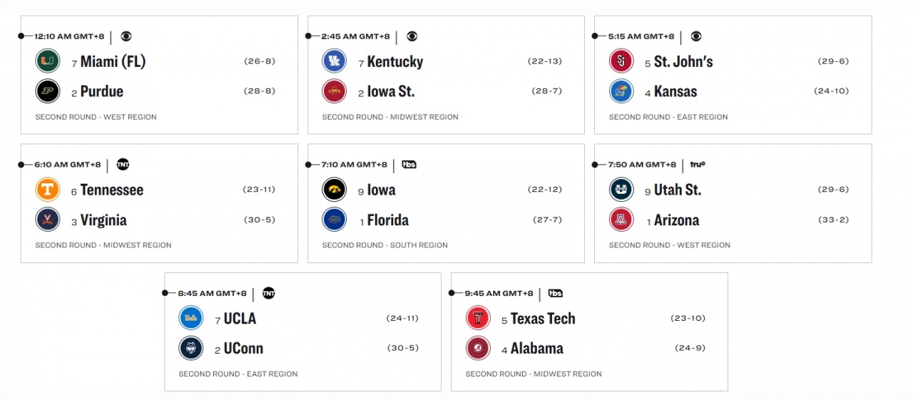 瘋?cè)?2強(qiáng)首日晉級球隊(duì):密歇根大學(xué)、密歇根州立大學(xué)、杜克大學(xué)、休斯敦大學(xué)、德克薩斯大學(xué)、伊利諾伊大學(xué)、內(nèi)布拉斯加大學(xué)、阿肯色大學(xué)。