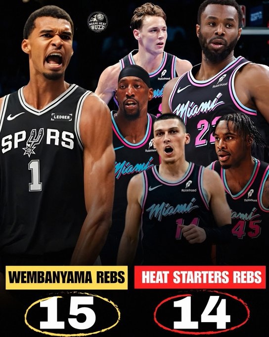 此役,熱火首發(fā)五人僅搶到14個(gè)籃板,而對面文班亞馬一人就15個(gè)籃板。