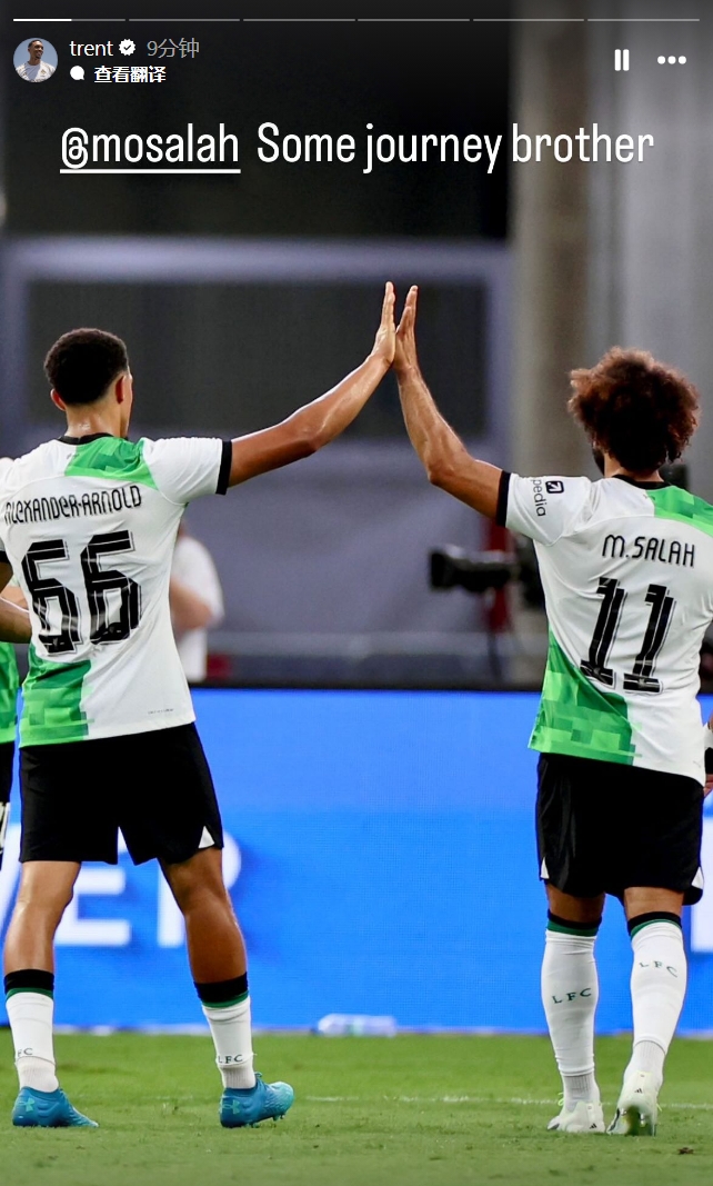 阿諾德社媒曬出與薩拉赫的背影合照,配文:“這真是一段非凡的旅程,兄弟?!?/p>