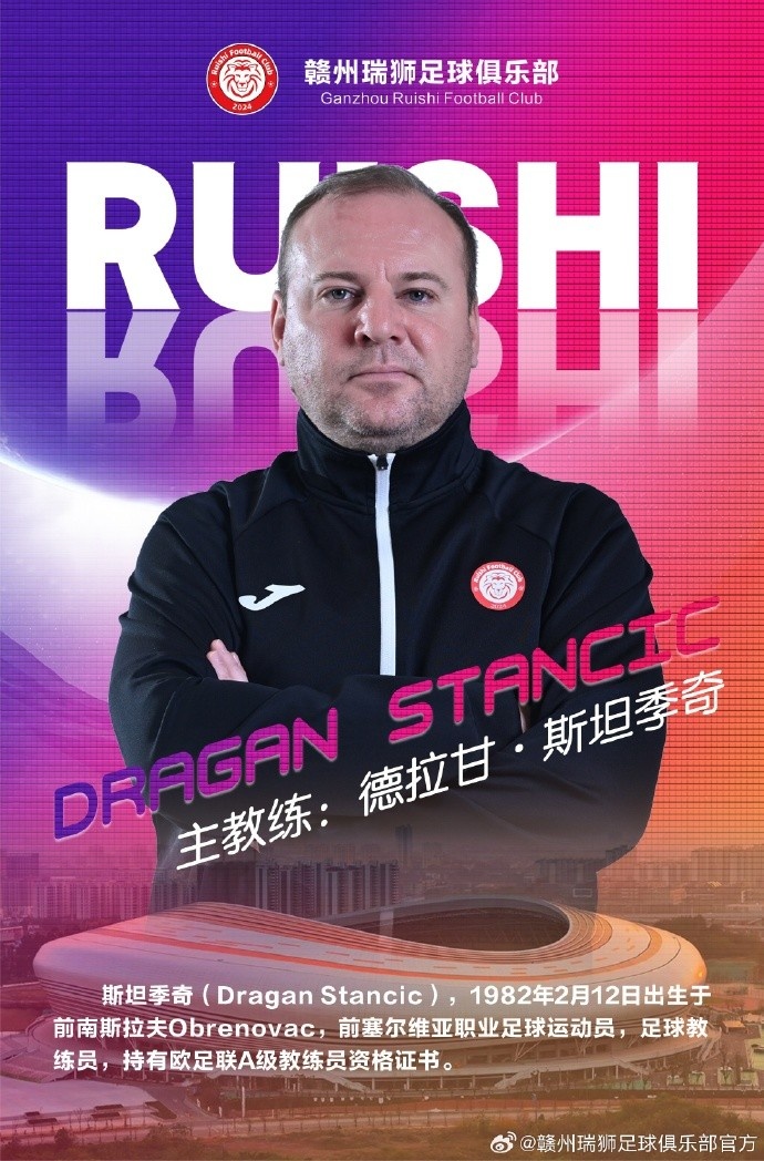 直播吧3月25日訊 中乙贛州瑞獅官宣新賽季教練團(tuán)隊(duì),塞爾維亞人德拉甘·斯坦季奇擔(dān)任主教練,李曉挺擔(dān)任領(lǐng)隊(duì)。