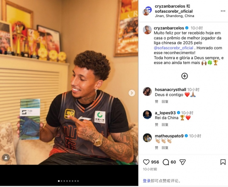 直播吧3月3日訊 昨日,山東泰山外援克雷桑更新社媒,曬出自己獲得Sofascore頒發(fā)的2025年度中超最佳球員獎(jiǎng)杯照及獎(jiǎng)杯開箱視頻。