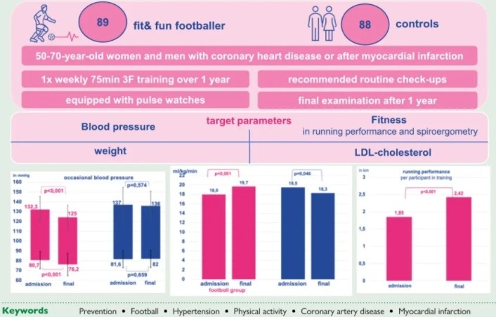 足球不僅是一項擁有無窮魅力的競技運動,還是一種改善心臟功能的健身方式。根據(jù)來自歐洲心臟病學會官方醫(yī)學期刊《歐洲預防心臟雜志》的研究顯示,每周進行60到75分鐘的足球訓練,可以有效促進心臟、肺部、肌肉的綜合鍛煉,增強心肺耐力,對有心肌梗死或冠心病病史的人群產(chǎn)生了顯著的健康改善作用。除了“治病救人”,足球還能激發(fā)參與者的積極性,減少孤獨感,融洽鄰里關(guān)系,促進社會和諧。