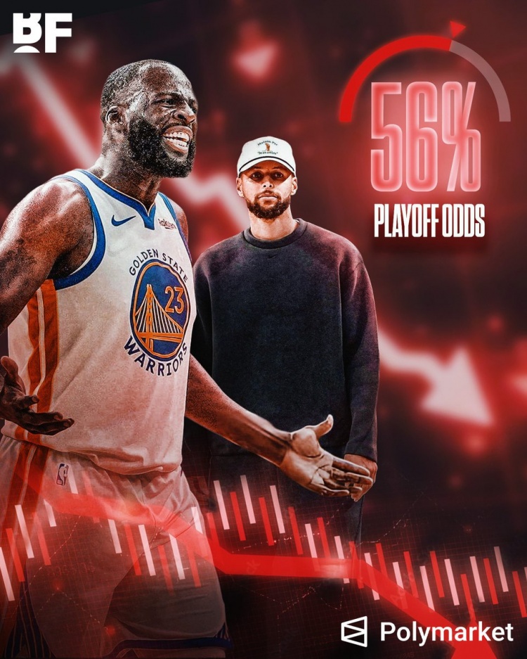 本場失利后,勇士在最近9場比賽中輸?shù)袅?場,體育預(yù)測平臺Polymarket Sports更新了勇士晉級季后賽的概率,目前已從 92%暴降至56%。
