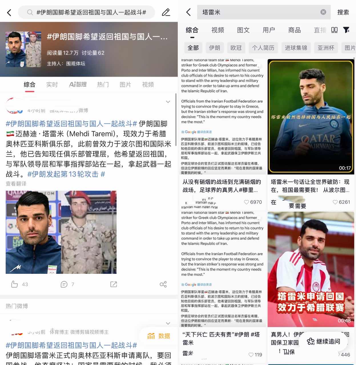 “塔雷米準(zhǔn)備回伊朗參戰(zhàn)”?消息源自營銷號杜撰,基本可認定為假
