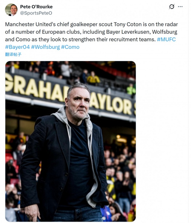 Pete O'Rourke透露,曼聯(lián)首席門將球探托尼·科頓受到多家歐洲俱樂部的關(guān)注,包括勒沃庫森、沃爾夫斯堡、科莫,這些俱樂部正尋求加強引援團隊。