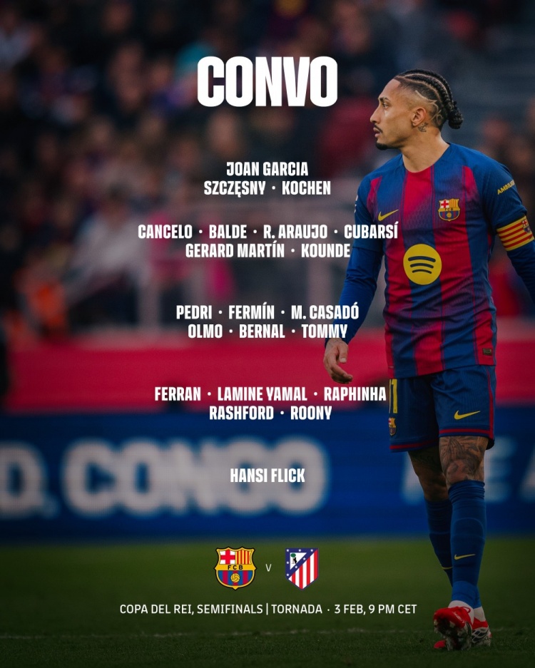直播吧3月3日訊 北京時(shí)間明天凌晨4點(diǎn),巴薩將在國(guó)王杯半決賽次回合比賽中主場(chǎng)對(duì)陣馬競(jìng),首回合巴薩0-4落敗。巴薩公布了此役的球員名單,萊萬(wàn)因眼眶受傷缺席。