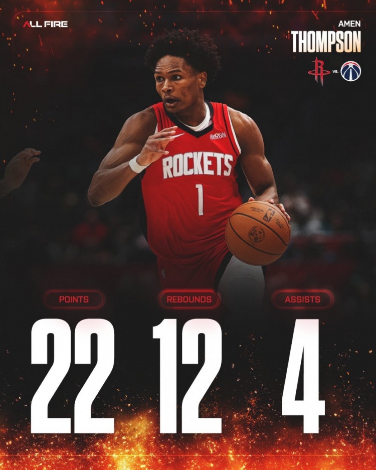 合砍103分!火箭官推發(fā)布謝潑德、阿門、KD和申京四人數(shù)據(jù)海報