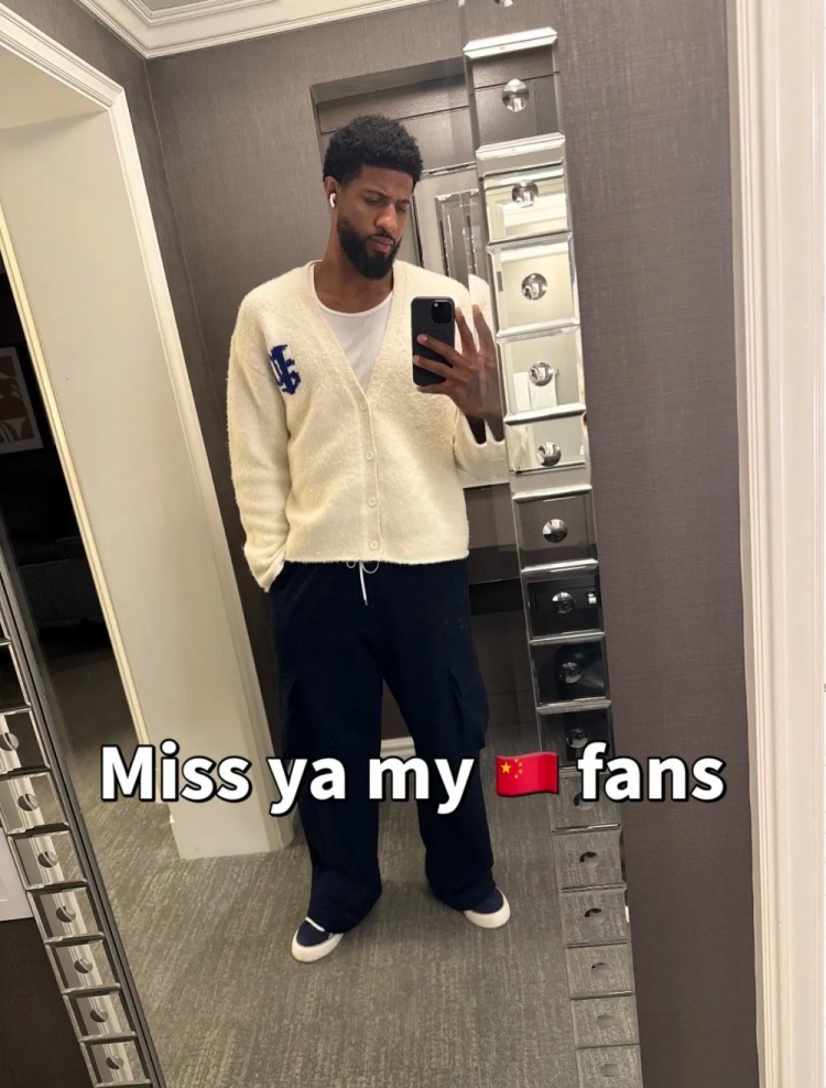 直播吧3月3日訊 保羅·喬治更新抖音,曬出了在一張最新自拍,并在圖片上寫道想念中國球迷。