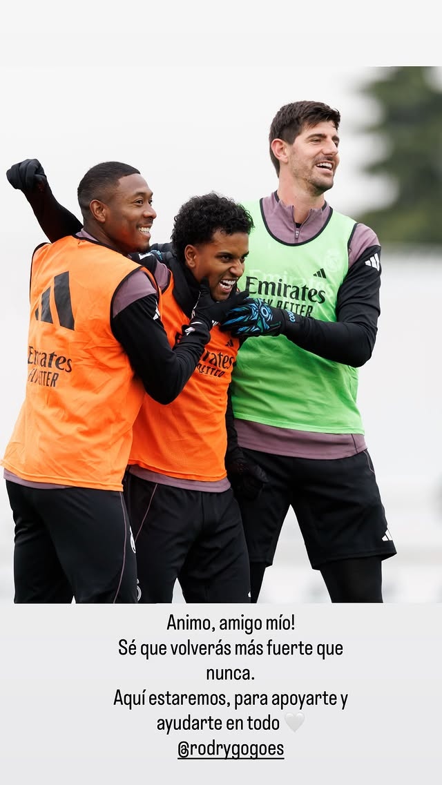 在社交媒體上,庫爾圖瓦曬出了自己和羅德里戈以及阿拉巴在一起的照片,并寫道:加油,我的朋友!