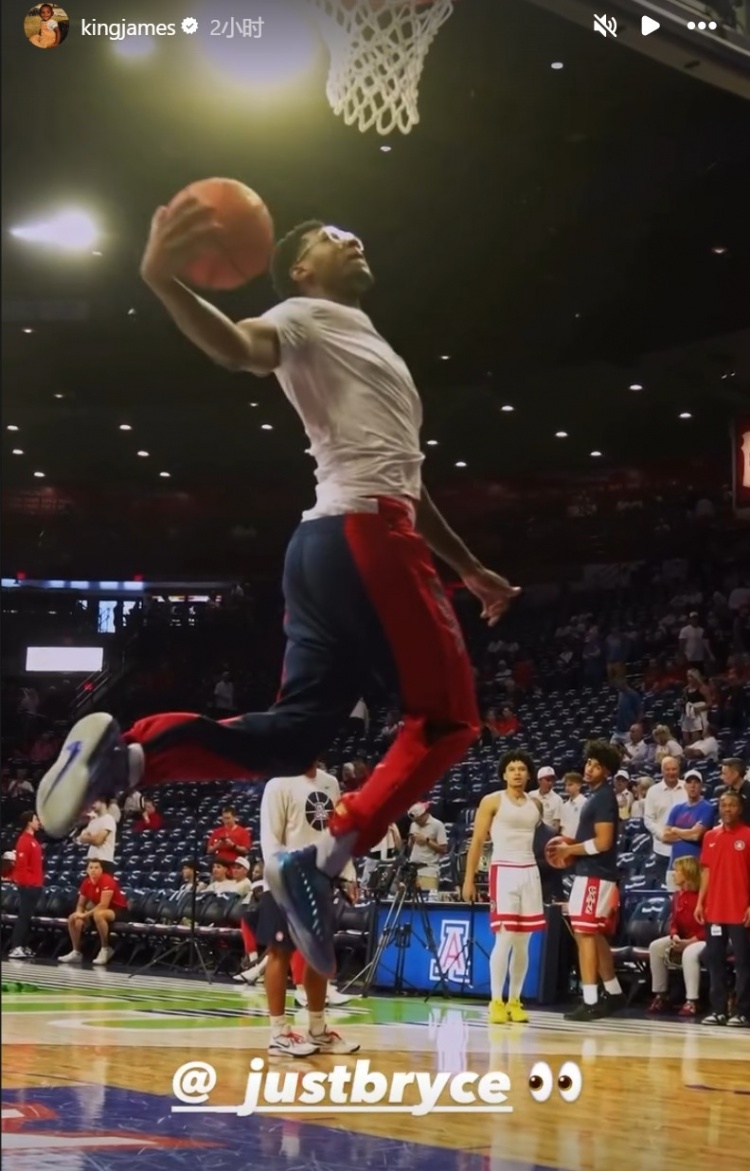 直播吧3月4日訊 今天,湖人球星勒布朗·詹姆斯轉(zhuǎn)發(fā)了二兒子布萊斯的兩記扣籃。