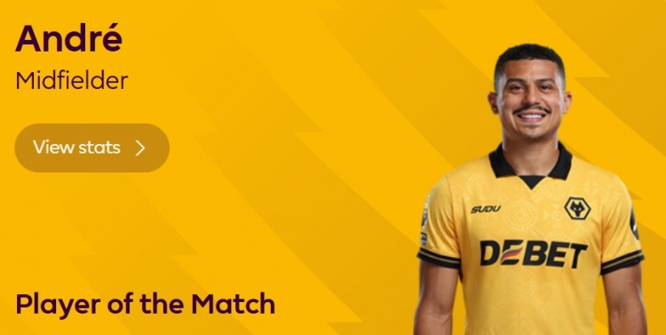 本場比賽狼隊(duì)球員安德烈·特林達(dá)德打進(jìn)絕殺球,賽后他也當(dāng)選英超官方評選出的本場最佳球員。