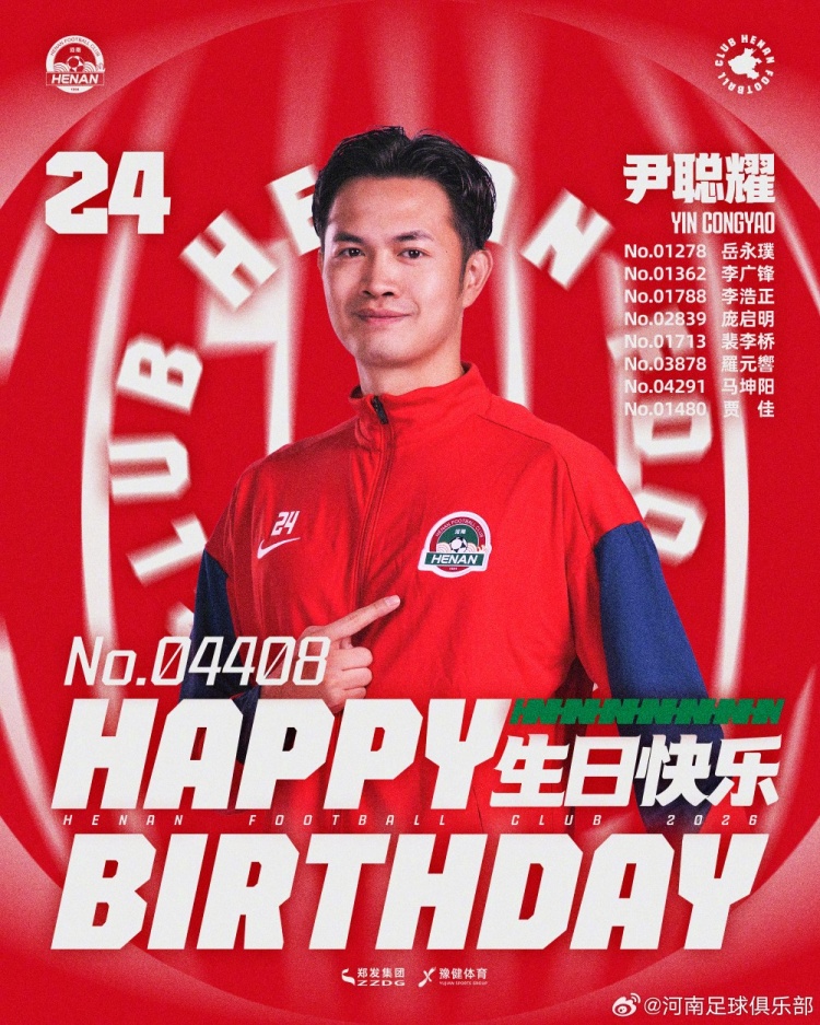今天是河南足球俱樂部球員尹聰耀(會(huì)員ID:No.04408)及8名官方會(huì)員的生日,讓我們一同祝福他們生日快樂! ???
