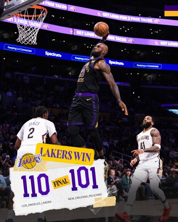 直播吧3月4日訊 NBA常規(guī)賽,湖人110-101戰(zhàn)勝鵜鶘。