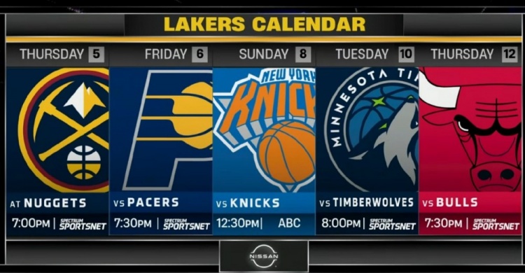 湖人后續(xù)5場比賽的賽程如下: