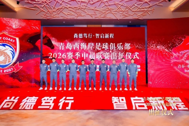 在青島西海岸2026賽季中超出征儀式上,主教練鄭智向關(guān)心支持球隊的各界人士與球迷表示感謝。他表示,擔(dān)任主帥倍感榮幸,也深知責(zé)任重大。球隊先后海內(nèi)外進(jìn)行系統(tǒng)拉練并在重慶、成都開展熱身賽,通過系統(tǒng)備戰(zhàn)與磨合,球隊整體實力、戰(zhàn)術(shù)默契度顯著提升,目前已為新賽季做好充分準(zhǔn)備。鄭智指導(dǎo)表示,全新教練團(tuán)隊、以老帶新的陣容,以及各界的鼎力支持,是球隊沖擊新目標(biāo)的強(qiáng)大動力。他代表全隊鄭重表態(tài),新賽季必將全力以赴、奮勇拼搏,展現(xiàn)足球城風(fēng)采,也期待球迷繼續(xù)并肩支持。