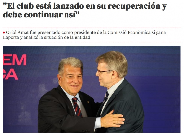 在拉波爾塔競(jìng)選總部舉行的發(fā)布會(huì)上,阿馬特表示:“2021年時(shí),俱樂部沒有足夠的資金支付運(yùn)動(dòng)員和非運(yùn)動(dòng)員的工資,也無法兌現(xiàn)經(jīng)濟(jì)承諾?!?/p>