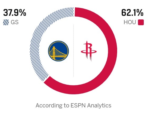 ESPN預測本場勝率,勇士37.9%,火箭62.1%。