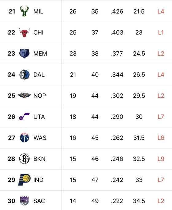 擺爛大賽如火如荼!聯(lián)盟最差的10支球隊(duì)已合計(jì)44連敗
