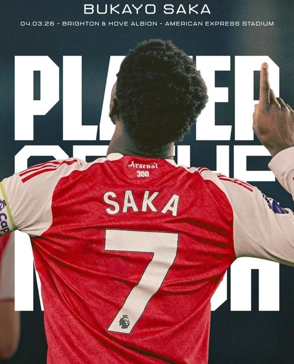 本場比賽薩卡打進全場唯一進球,他也當(dāng)選阿森納官方評選出的本場比賽隊內(nèi)最佳球員。