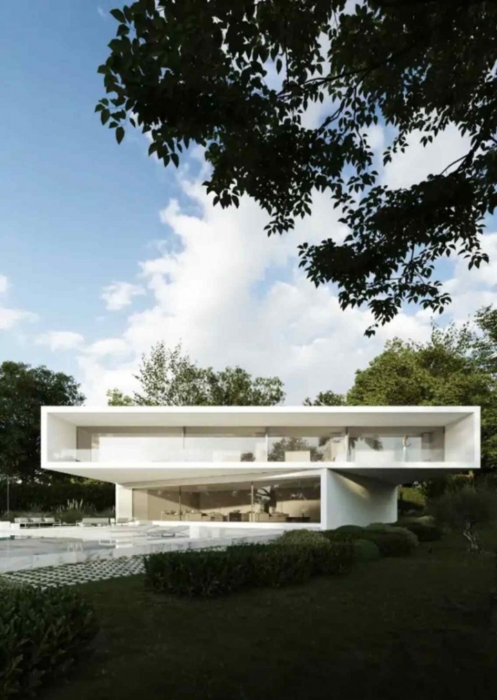 房屋采用現(xiàn)代極簡風(fēng)格,設(shè)計(jì)上融合了疊層結(jié)構(gòu)、轉(zhuǎn)角造型與多層錯(cuò)落布局,配有大面積落地窗,可直接眺望拉莫拉萊哈皇家高爾夫俱樂部。