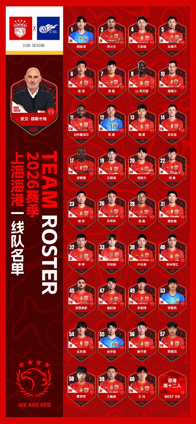 2026賽季上海海港一線隊(duì)名單 并肩戰(zhàn)斗