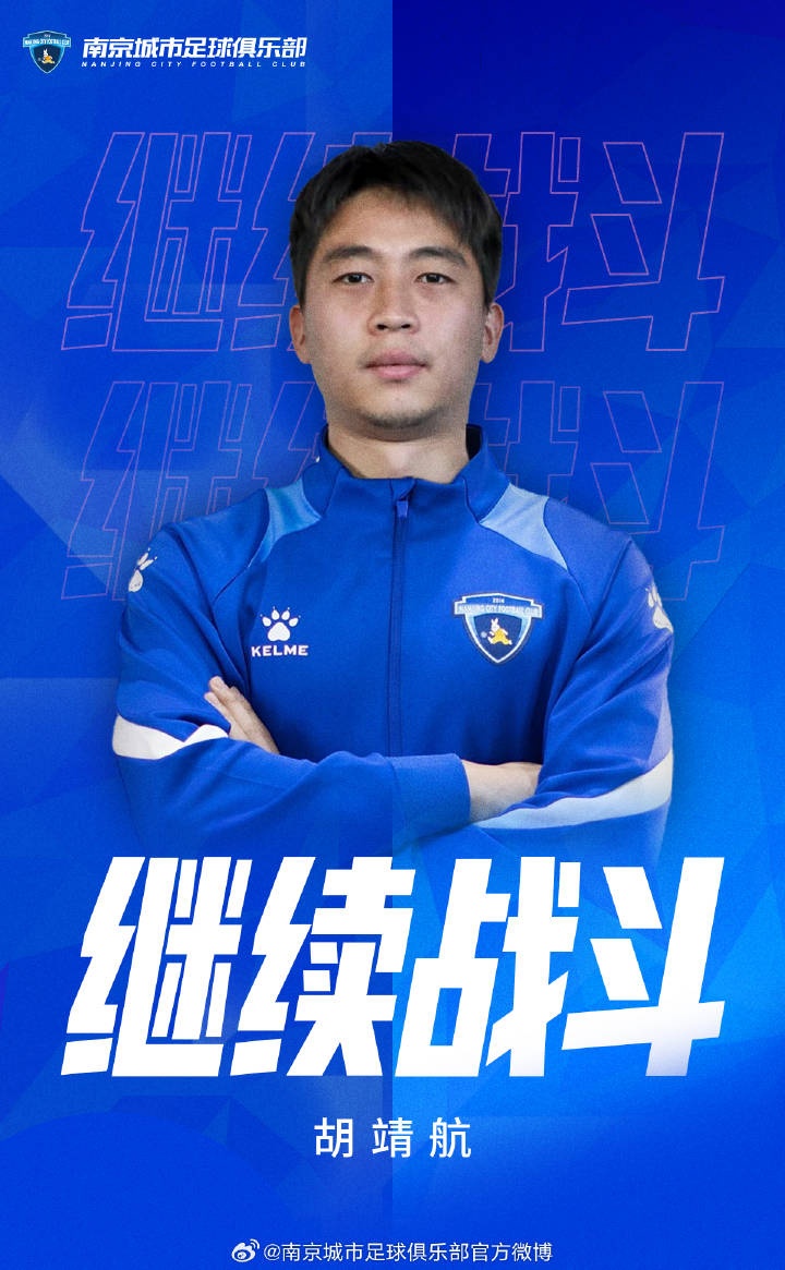 官宣|南京城市足球俱樂部與胡靖航完成續(xù)約