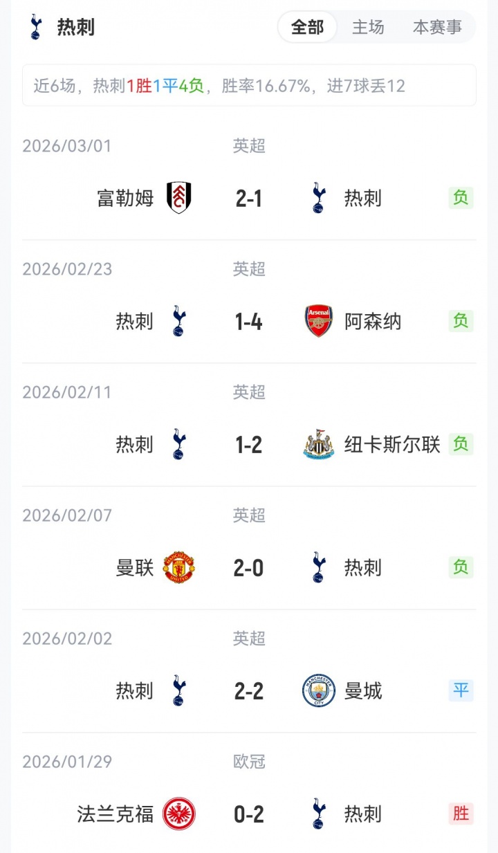 本場比賽前熱刺7勝8平13負,積29分排名英超第16;水晶宮9勝8平11負,積35分排名英超第14。