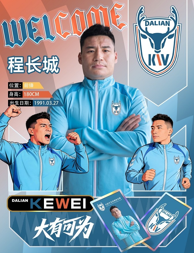 經(jīng)與球員本人友好協(xié)商并達成一致,程長城正式加盟大連可為足球俱樂部!