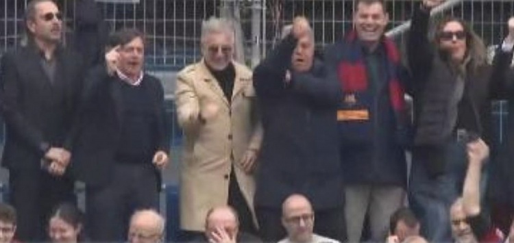 直播吧3月1日訊 在本輪西甲聯(lián)賽,巴薩主席候選人拉波爾塔在主場看臺上再次做出爭議手勢。