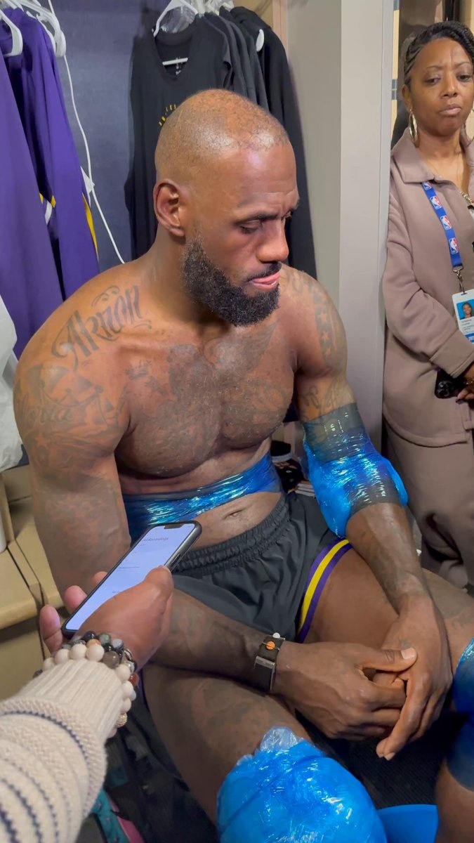 據(jù)賽后湖人記者Khobi Price拍攝的采訪片段,詹姆斯在賽后對(duì)受傷的左手肘進(jìn)行了冰敷。