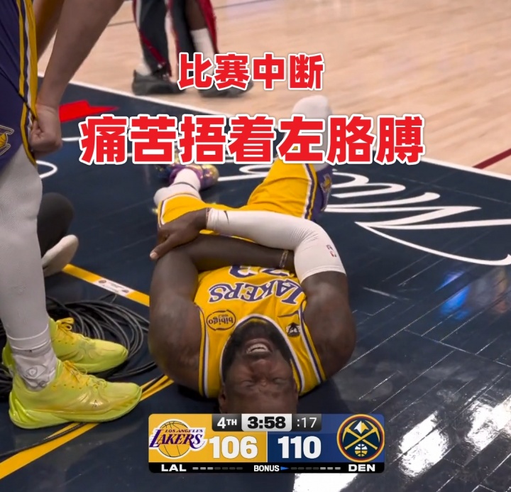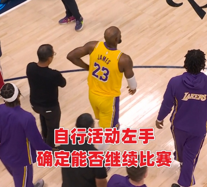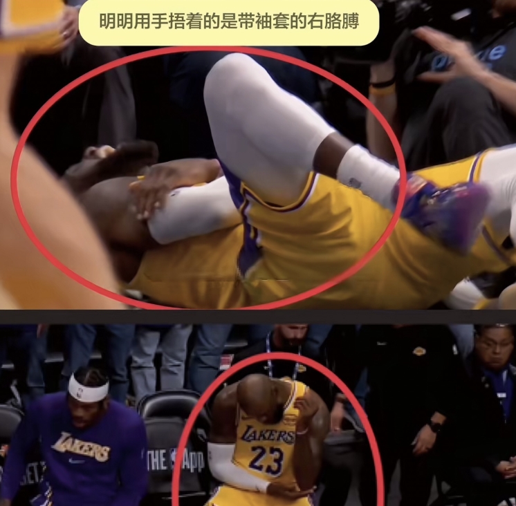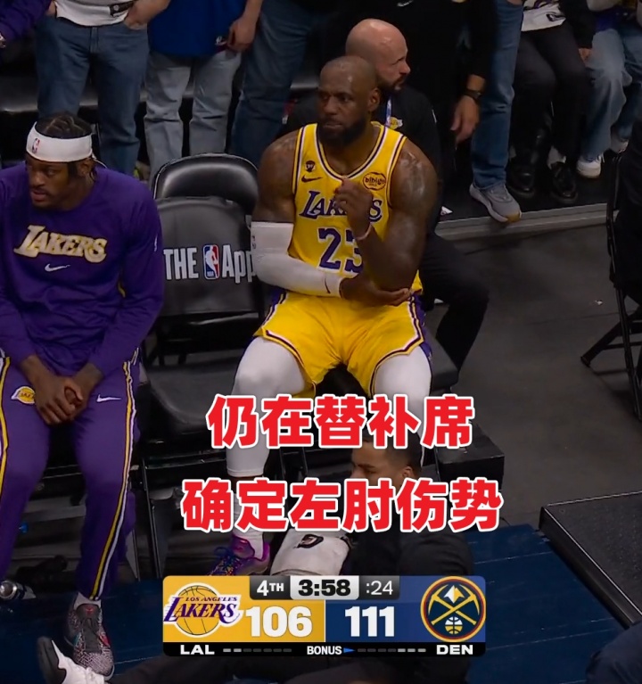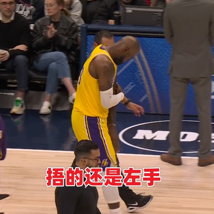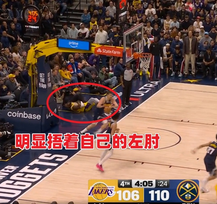 本場(chǎng)第四節(jié)4分10秒左右,詹姆斯三分線外持球沖擊約基奇上籃命中,隨后失衡落地肘部受傷。有球迷稱詹姆斯為何右手落地但卻捂著左肘,一會(huì)捂著右邊一會(huì)捂著左邊,是傷病轉(zhuǎn)移了?還是演戲博同情?