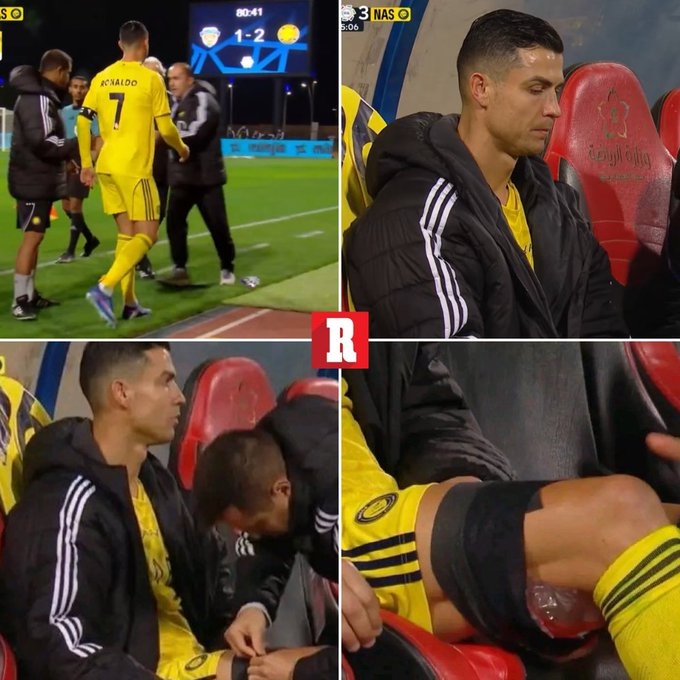 今天凌晨,利雅得勝利在客場3-1戰(zhàn)勝費哈,C羅在比賽第81分鐘因身體不適被換下,下場后他被拍到坐在替補席上,表情明顯感到疼痛,并在受影響的部位敷上了冰袋。