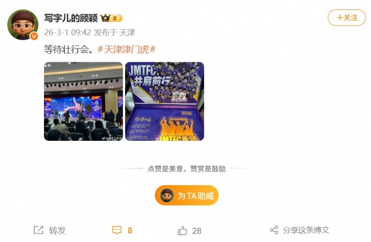 記者顧穎更新社媒,曬出了壯行會現(xiàn)場以及新賽季禮盒的照片。