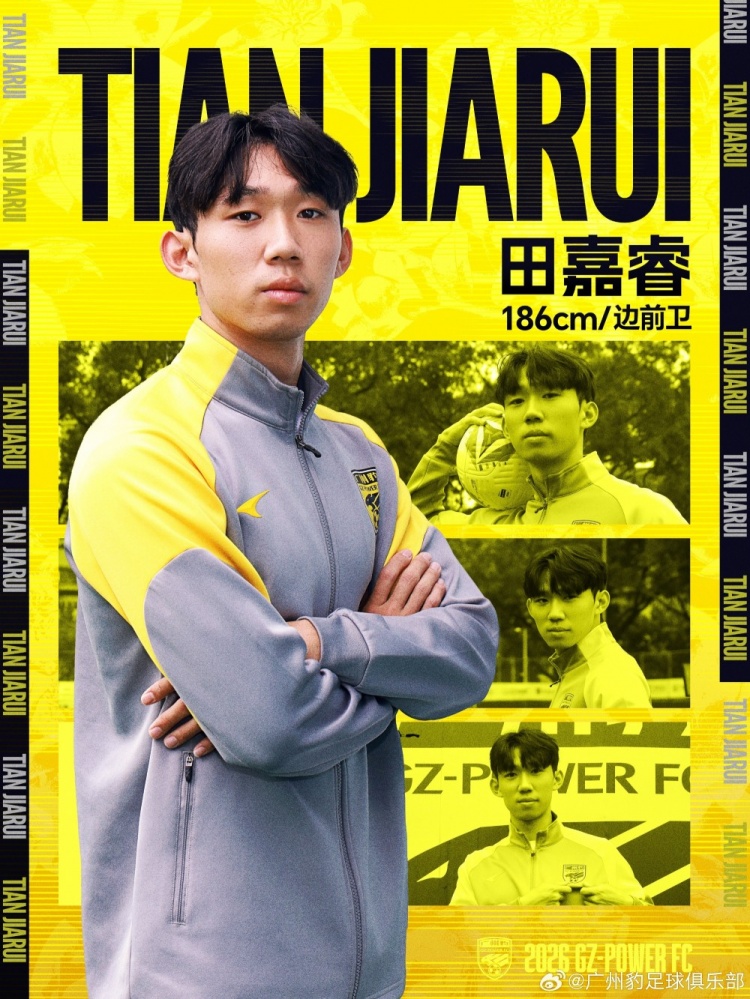 經(jīng)與球員本人協(xié)商并達(dá)成一致,極具沖擊力的前場(chǎng)攻擊手田嘉睿正式加盟廣州豹足球俱樂(lè)部。