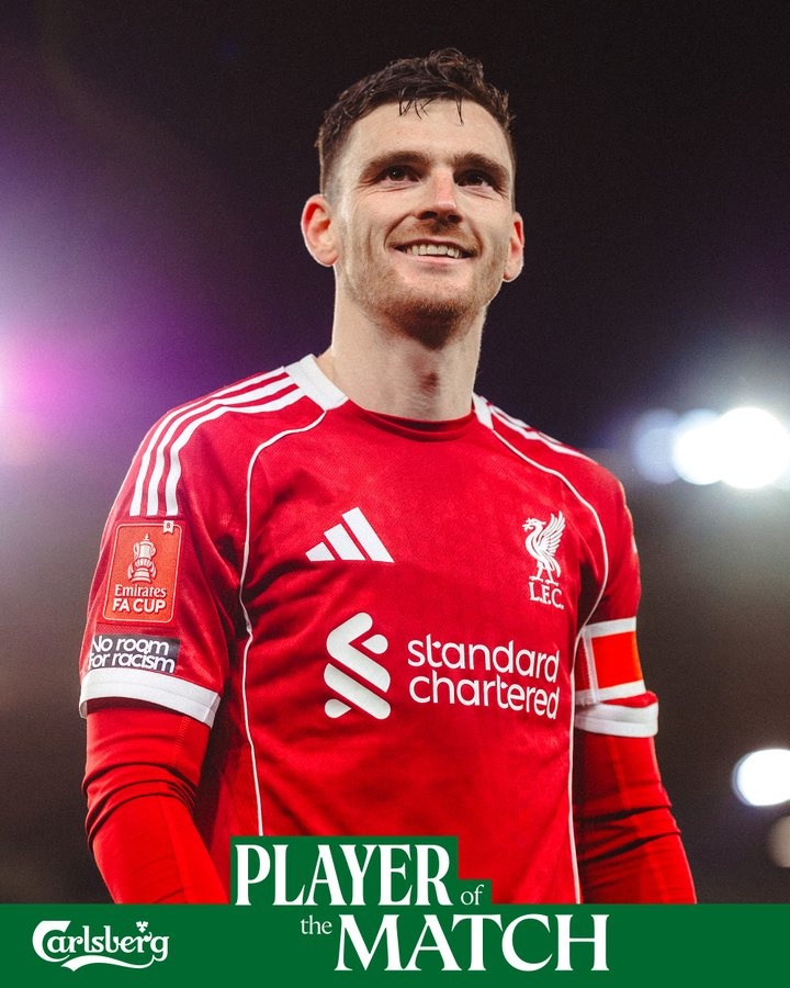 羅伯遜在本場(chǎng)比賽傳射建功,先是自己遠(yuǎn)射打破僵局,隨后又助攻薩拉赫破門(mén)。