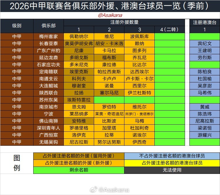 朱藝在個(gè)人微博中寫道:2026中甲聯(lián)賽冬窗正式關(guān)窗,中甲各隊(duì)引援結(jié)束。以下為各俱樂部外援、港澳臺(tái)球員一覽。蘇州東吳單外援,成為今年職業(yè)聯(lián)賽唯一沒有用滿外援名額的球隊(duì)。