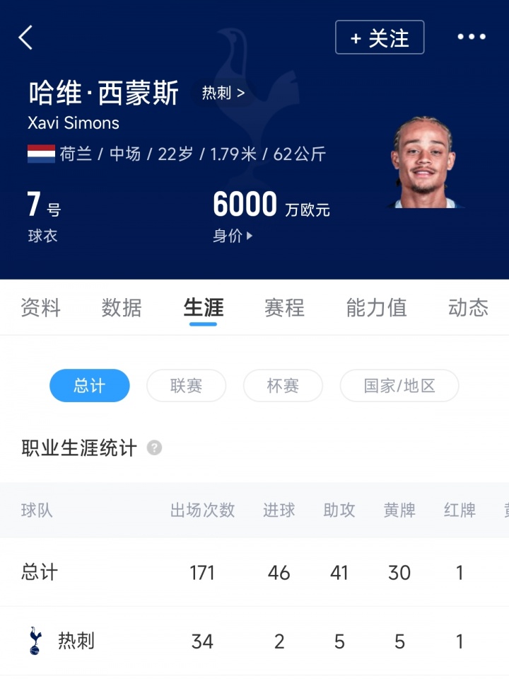 去年夏窗熱刺花費6500萬歐元的轉(zhuǎn)會費,從RB萊比錫簽下22歲的哈維·西蒙斯,他也由此成為了熱刺隊史標王。本賽季西蒙斯為熱刺出戰(zhàn)34場,貢獻2球5助,表現(xiàn)不盡人意。