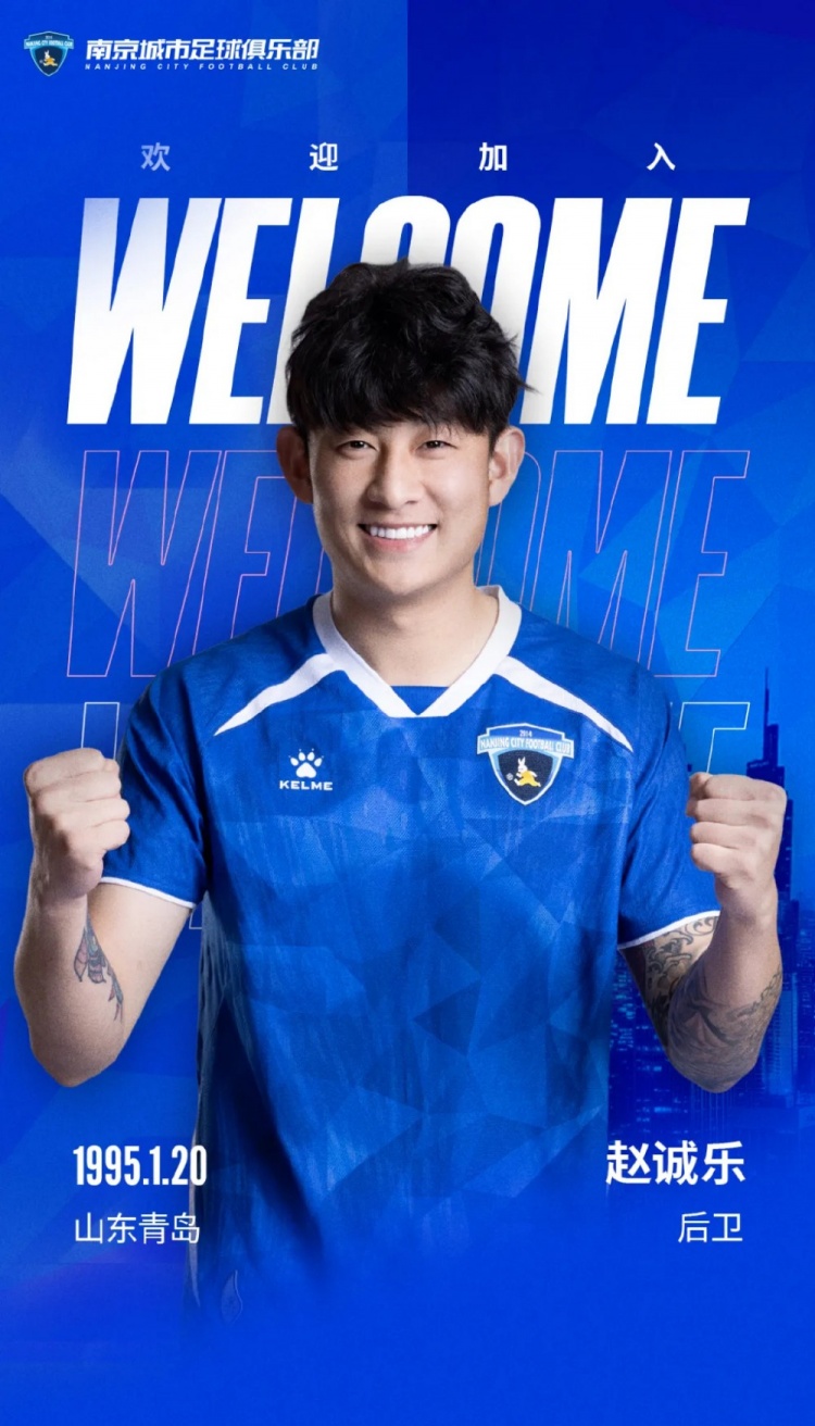 歡迎趙誠(chéng)樂(lè)加入南京城市大家庭!作為一名后場(chǎng)球員,趙誠(chéng)樂(lè)預(yù)判精準(zhǔn)、上搶果斷,同時(shí)具有良好的出球能力和防空能力。期待趙誠(chéng)樂(lè)可以為南京球迷創(chuàng)造出許多精彩瞬間,共同迎接南京城市新挑戰(zhàn)!