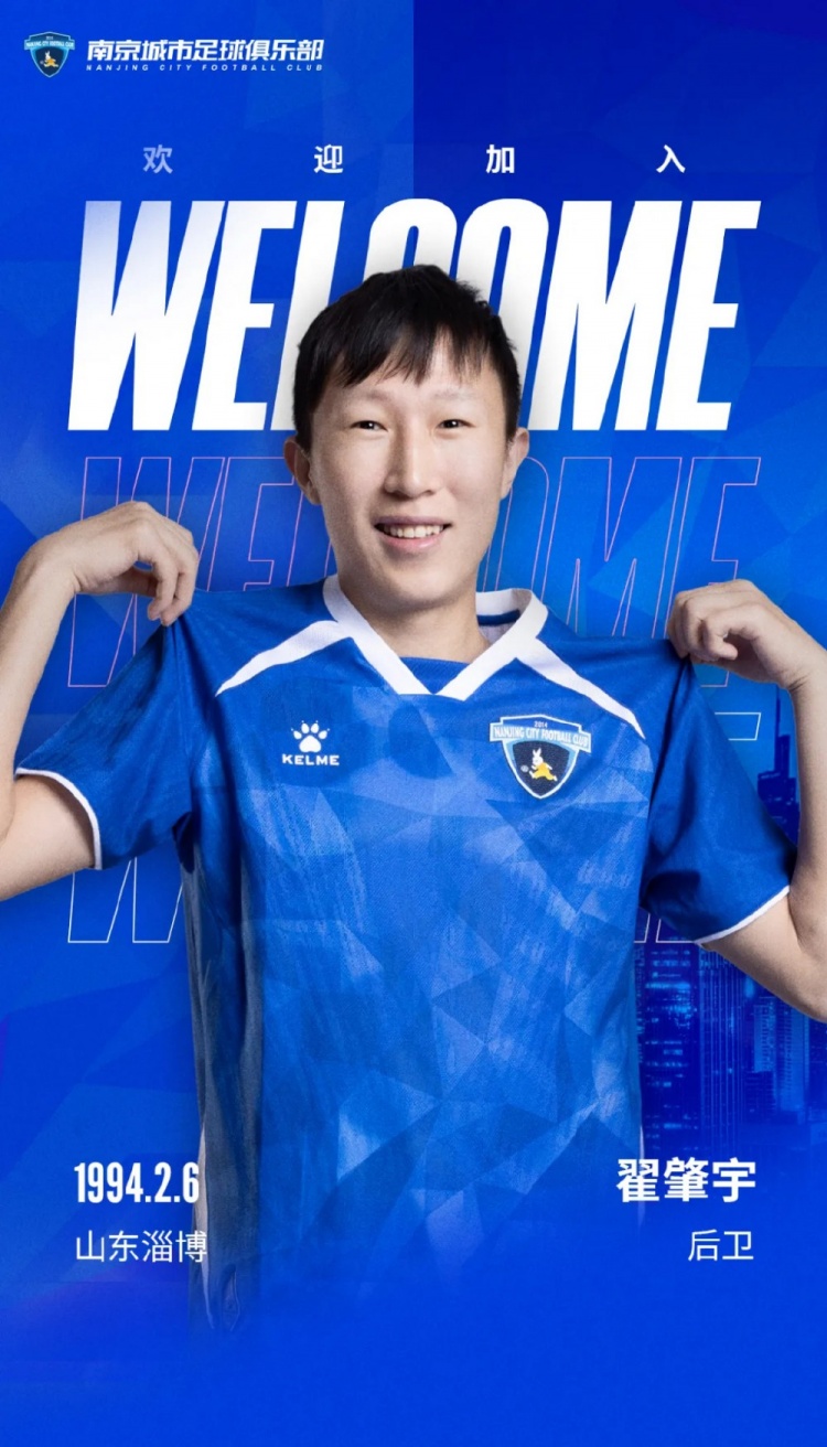 歡迎翟肇宇加入南京城市大家庭!作為一名經(jīng)驗(yàn)豐富的后衛(wèi),翟肇宇的加盟將是球隊(duì)后防線極具競(jìng)爭(zhēng)力的補(bǔ)充。期待翟肇宇在賽場(chǎng)上的精彩發(fā)揮!