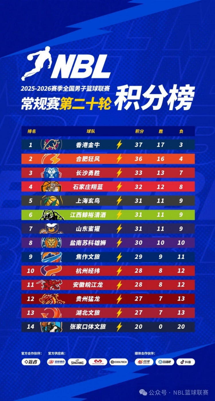 2025-2026賽季NBL常規(guī)賽第二十輪比賽于3月6日全部戰(zhàn)罷。