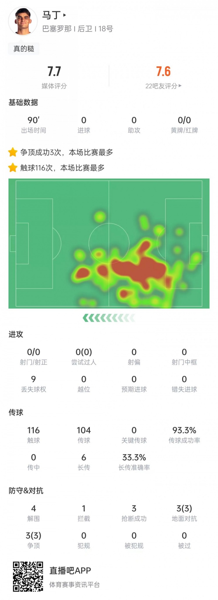 馬丁本場(chǎng)比賽數(shù)據(jù):