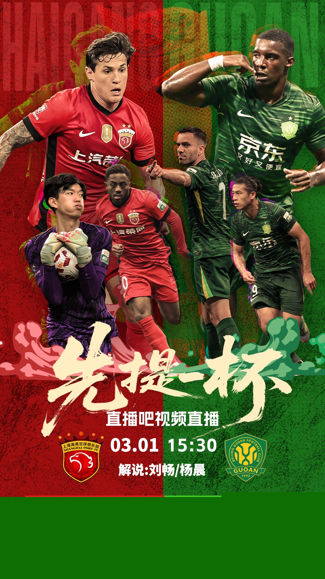 直播吧03月01日訊 北京時間15:30,中國足球協(xié)會超級杯,上海海港vs北京國安在南京奧體中心體育場進行,賽前雙方首發(fā)公布。本場比賽直播吧將免費視頻直播?。?a target="_blank" weibo="" mode="1,2">直播間鏈接