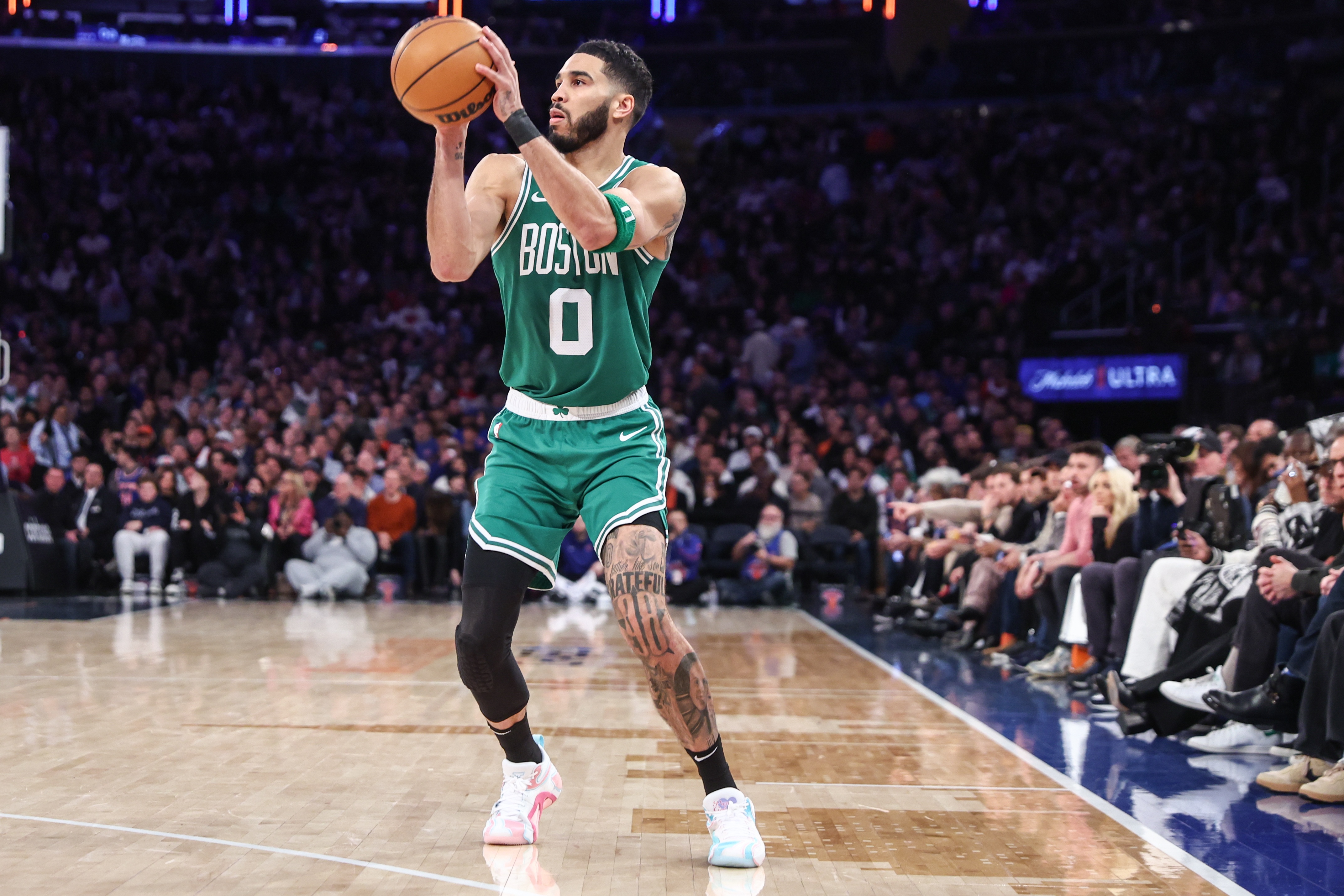 應(yīng)該會有的。馬祖拉對塔圖姆的情況一直守口如瓶,但在如此漫長的缺陣后,預(yù)計他將受到時間限制。德章泰·穆雷最近從跟腱撕裂中復(fù)出時,出場時間被限制在25分鐘左右。穆雷因傷缺席了大約13個月。到目前為止,塔圖姆已經(jīng)缺席了大約10個月。