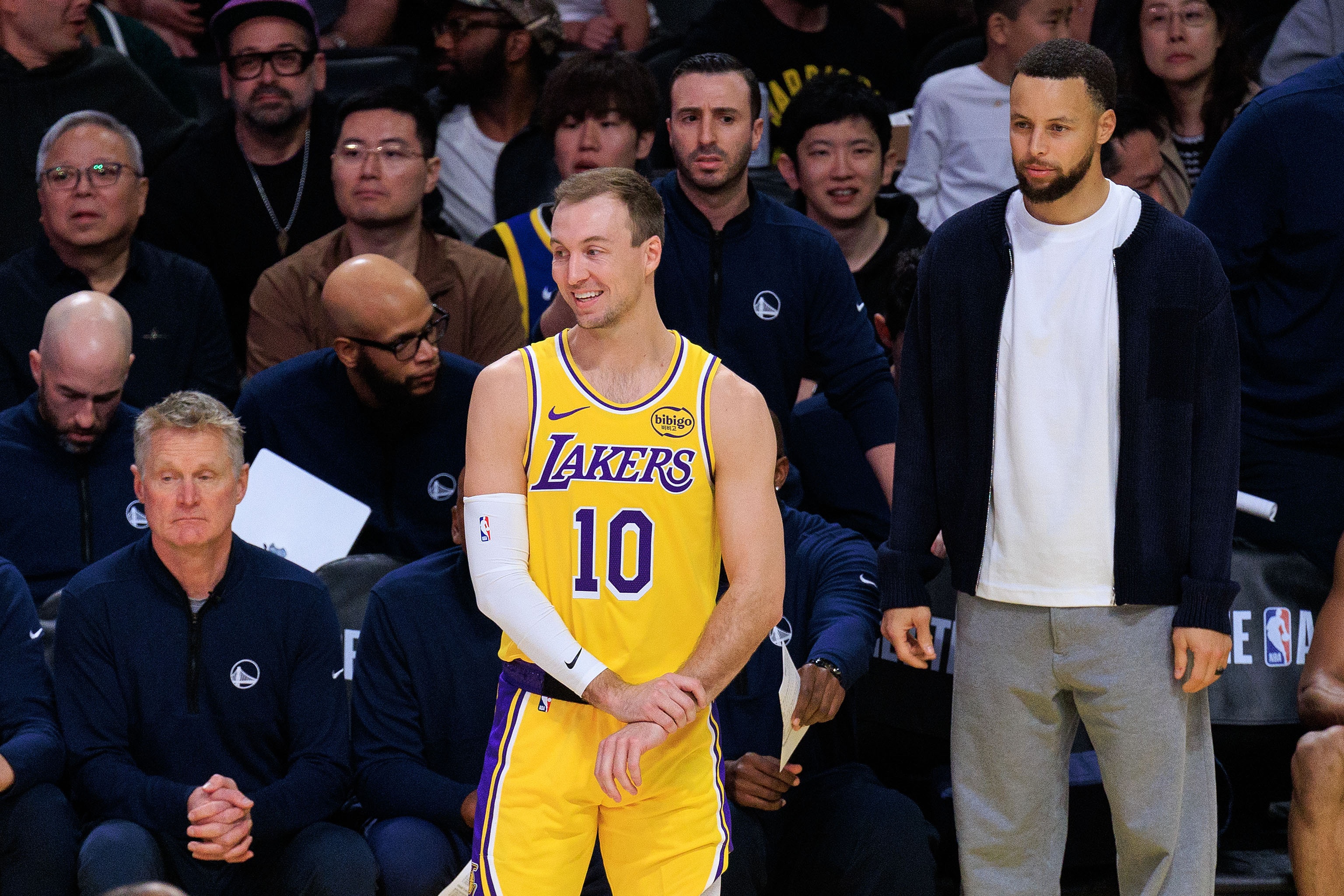 直播吧3月1日訊 NBA常規(guī)賽,湖人在客場(chǎng)129-101大勝勇士。