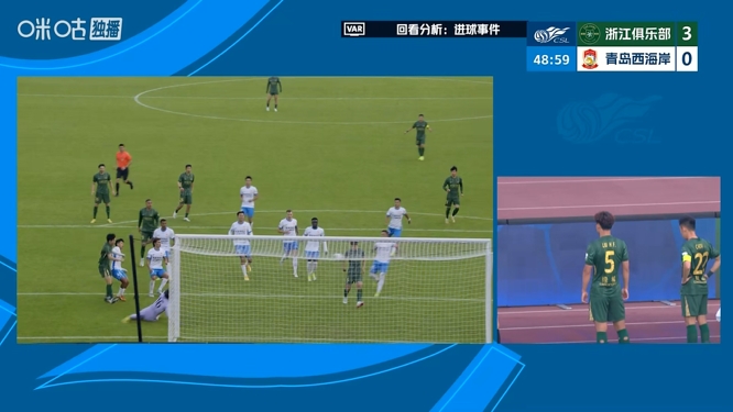 直播吧03月08日訊 中超第1輪,浙江vs青島西海岸。比賽第47分鐘,米特里策前場(chǎng)任意球罰出,樸鎮(zhèn)燮大力抽射被李昊撲了一下,球來(lái)到門(mén)前被劉浩帆笑納破門(mén)。但VAR隨后介入,主裁回看后認(rèn)定劉浩帆手球,進(jìn)球無(wú)效。