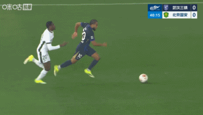 第41分鐘,武漢三鎮(zhèn)左路推進(jìn),貝維斯被恩科洛洛從背后推倒,主裁判出示黃牌警告↓