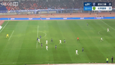 第45分鐘,王剛右路底線位置無人盯防的傳中,禁區(qū)內(nèi)法比奧頭槌破門!北京國安1-0領(lǐng)先武漢三鎮(zhèn)↓