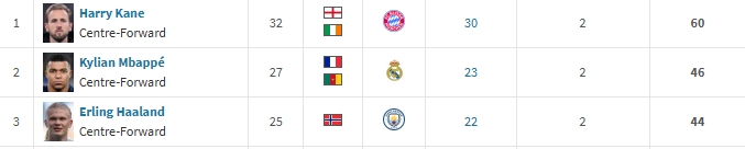 本賽季32歲的凱恩仍然保持著超高的效率,在到目前為止保持全勤,出戰(zhàn)37場比賽,狂轟45球并送出5助攻。在歐洲金靴排行榜上,凱恩目前60分大幅領(lǐng)先身后的姆巴佩。
